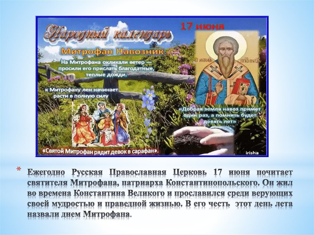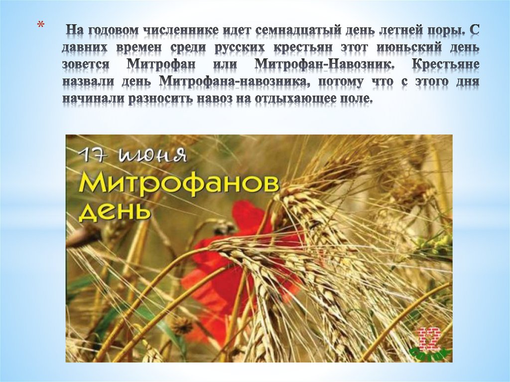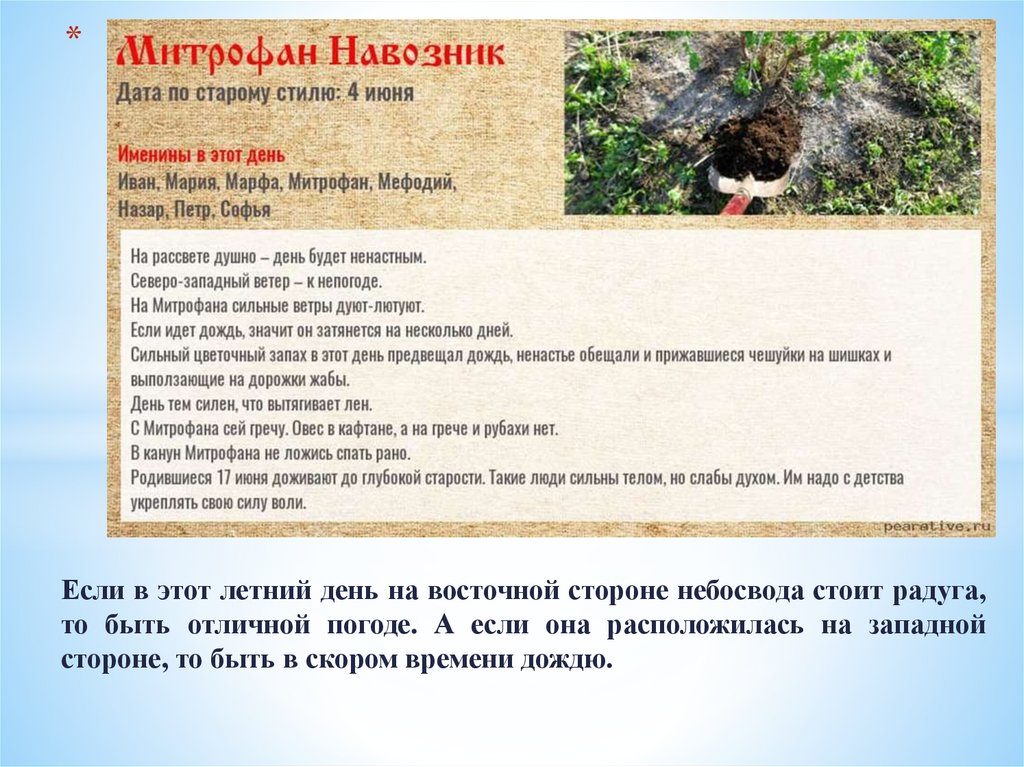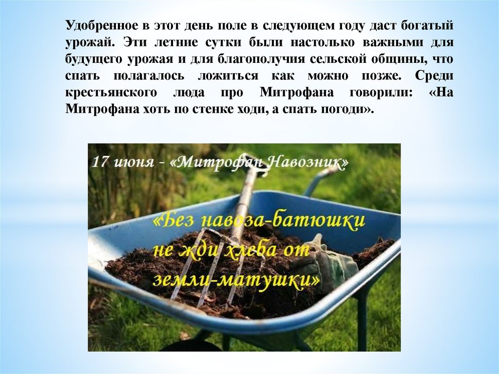 Этот день связан не только с удобрением грунта, но и с ветром. Вдавние времена славяне-землепашцы были убеждены, что ветер и