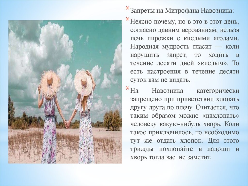 * Запреты на Митрофана Навозника:* Неясно почему, но в это в этот день,