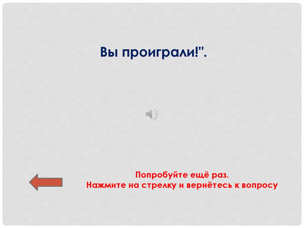 Вы проиграли!".Попробуйте ещё раз.