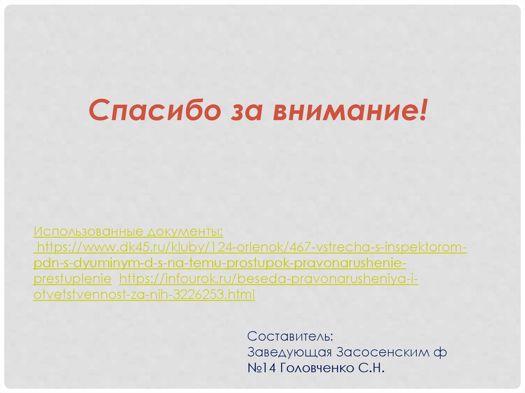 https://www.dk45.ru/kluby/124-orlenok/467-vstrecha-s-inspektorompdn-s-dyuminym-d-s-na-temu-prostupok-pravonarushenieprestuplenie https://infourok.ru/beseda-pravonarusheniya-iotvetstvennost-za-nih-3226253.html