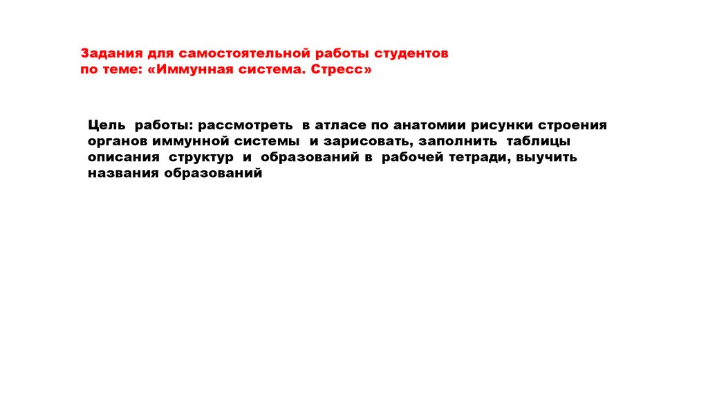 Задания для самостоятельной работы студентовпо теме: «Иммунная система. Стресс»