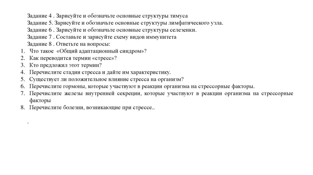 Иммунная система. Стресс. Задания для самостоятельной работы студентов