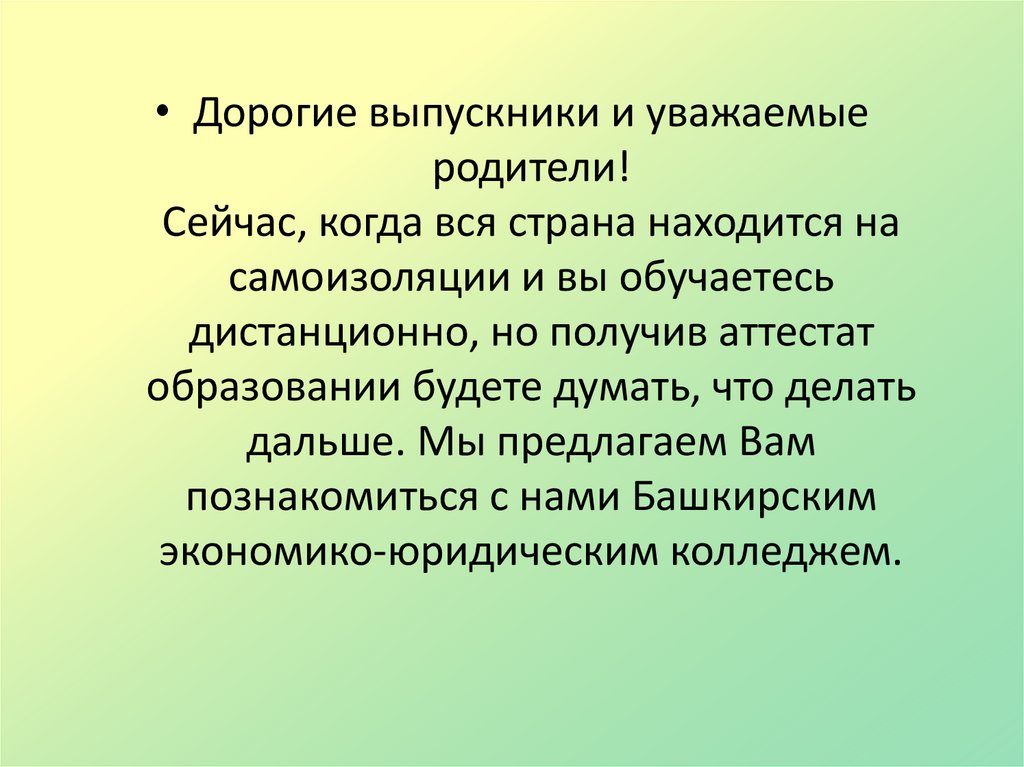 • Дорогие выпускники и уважаемыеродители!