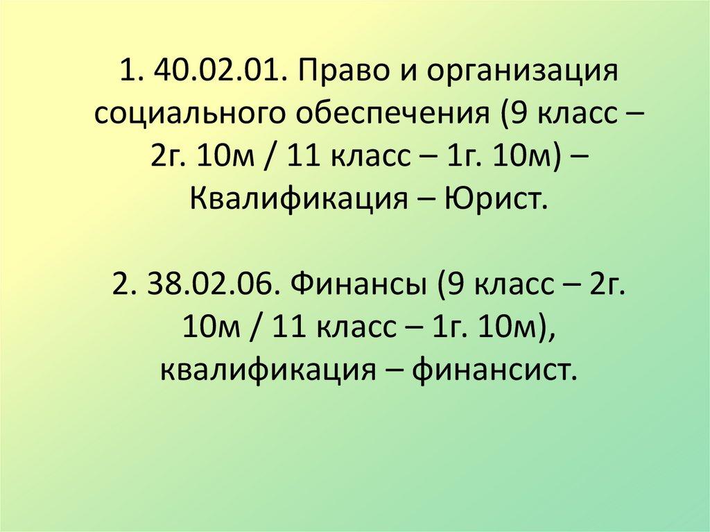 1. 40.02.01. Право и организациясоциального обеспечения (9 класс –