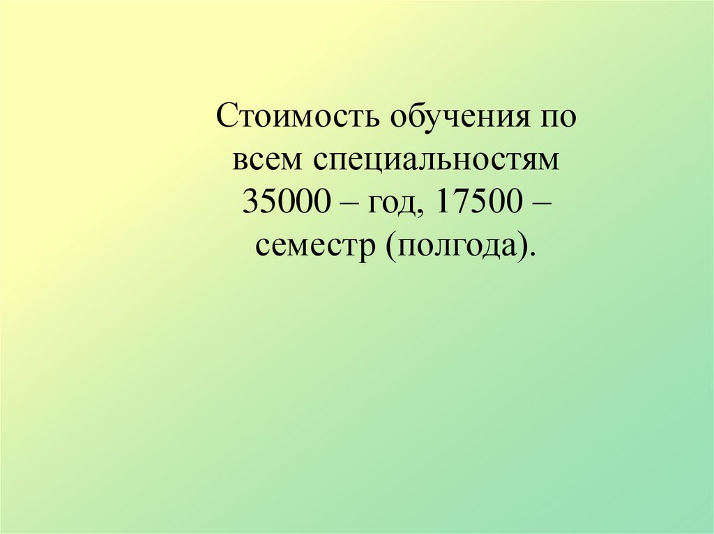 Стоимость обучения повсем специальностям