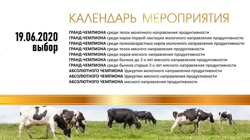 ГРАНД-ЧЕМПИОНА среди телок молочного направления продуктивностиГРАНД-ЧЕМПИОНА среди коров первой лактации молочного направления продуктивности