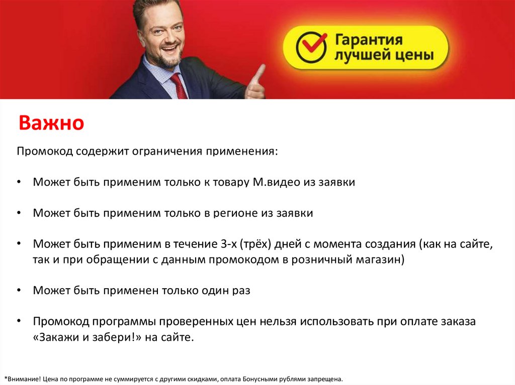 • Промокод программы проверенных цен нельзя использовать при оплате заказа