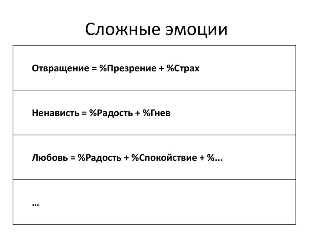 Сложные эмоцииОтвращение = %Презрение + %Страх