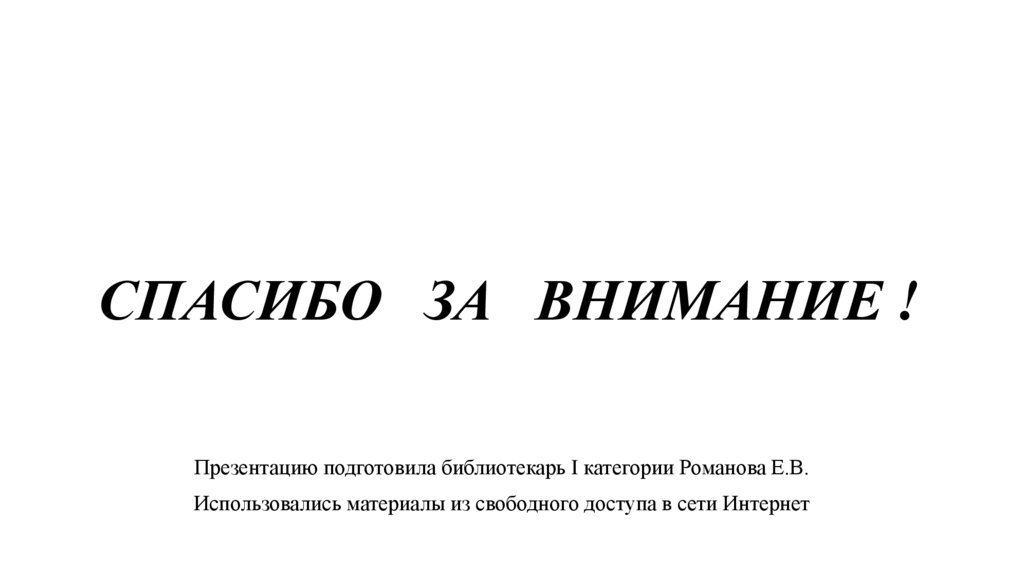 СПАСИБО ЗА ВНИМАНИЕ !Презентацию подготовила библиотекарь I категории Романова Е.В.