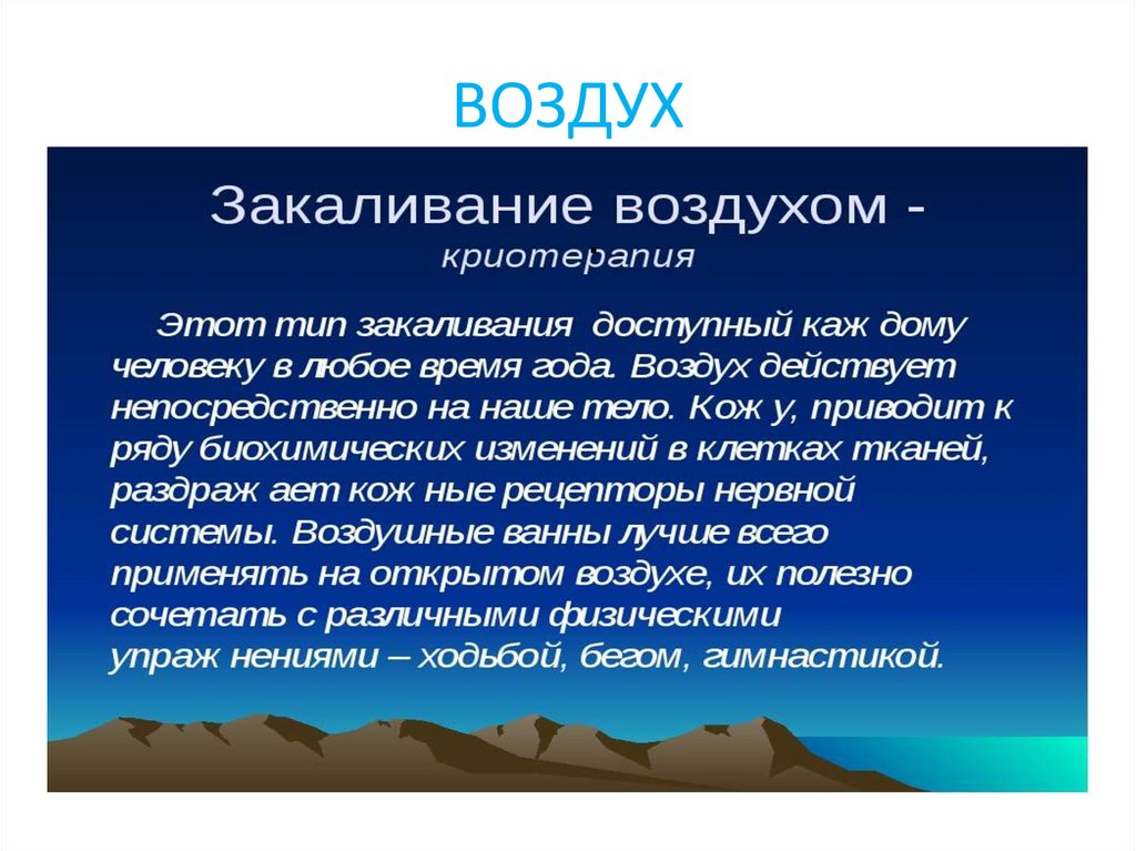 Понятие слова «закаливание»• Закаливание — метод физиотерапии по