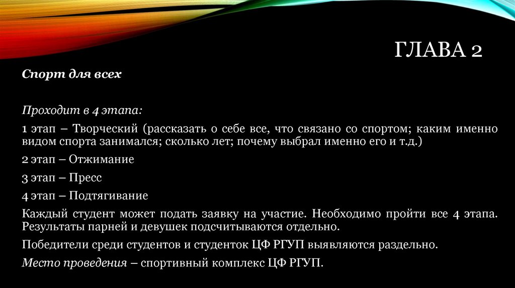 Победители среди студентов и студенток ЦФ РГУП выявляются раздельно.