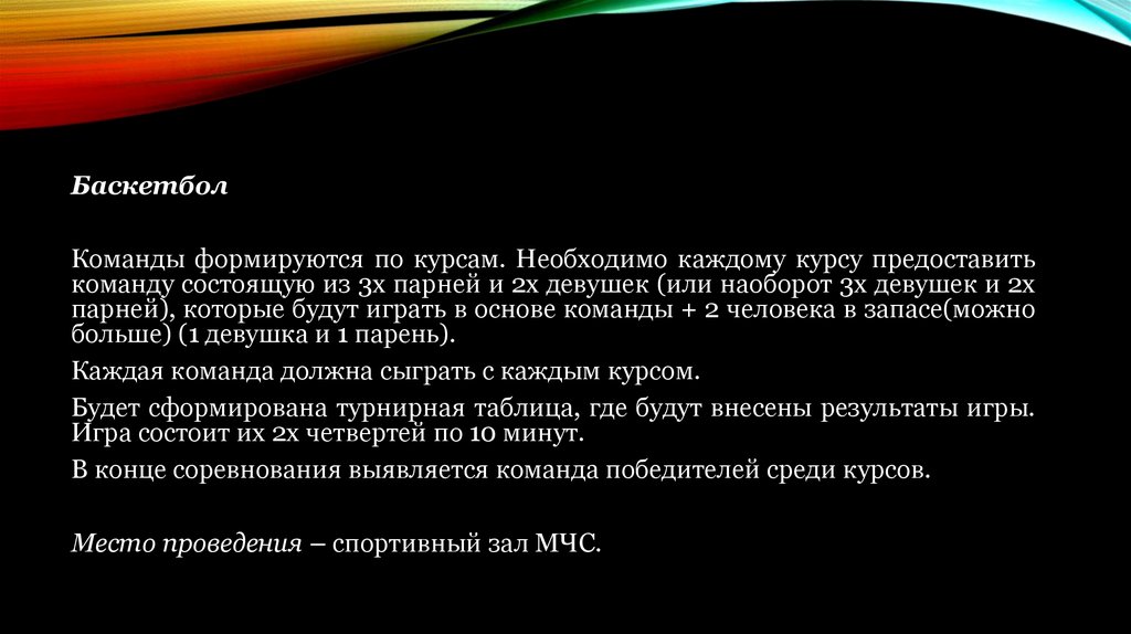 БаскетболКоманды формируются по курсам. Необходимо каждому курсу предоставить