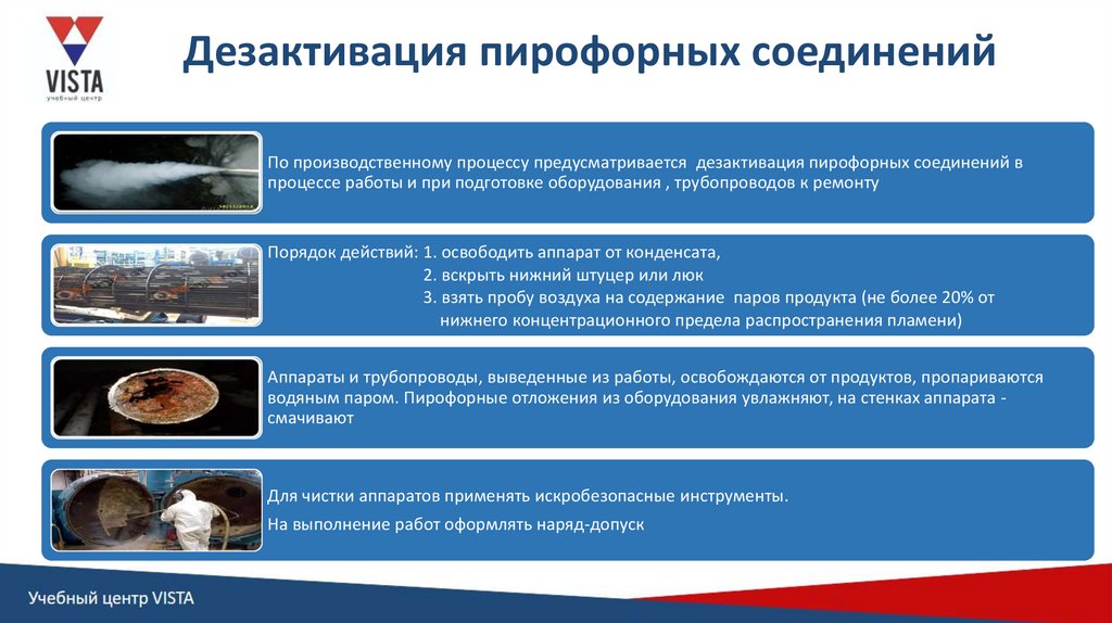 водяным паром. Пирофорные отложения из оборудования увлажняют, на стенках аппарата смачивают