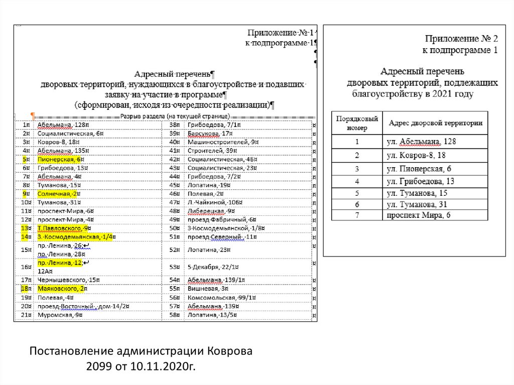 Постановление администрации Коврова2099 от 10.11.2020г.