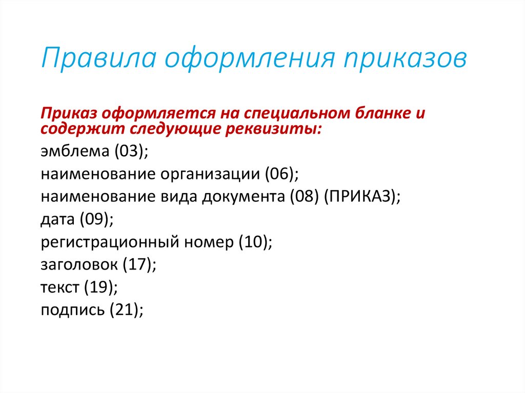 Правила оформления приказовПриказ оформляется на специальном бланке и