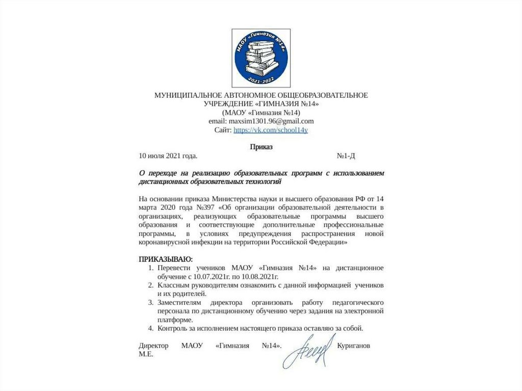 • Последний пункт распорядительной части можетсодержать сведения о подразделении или