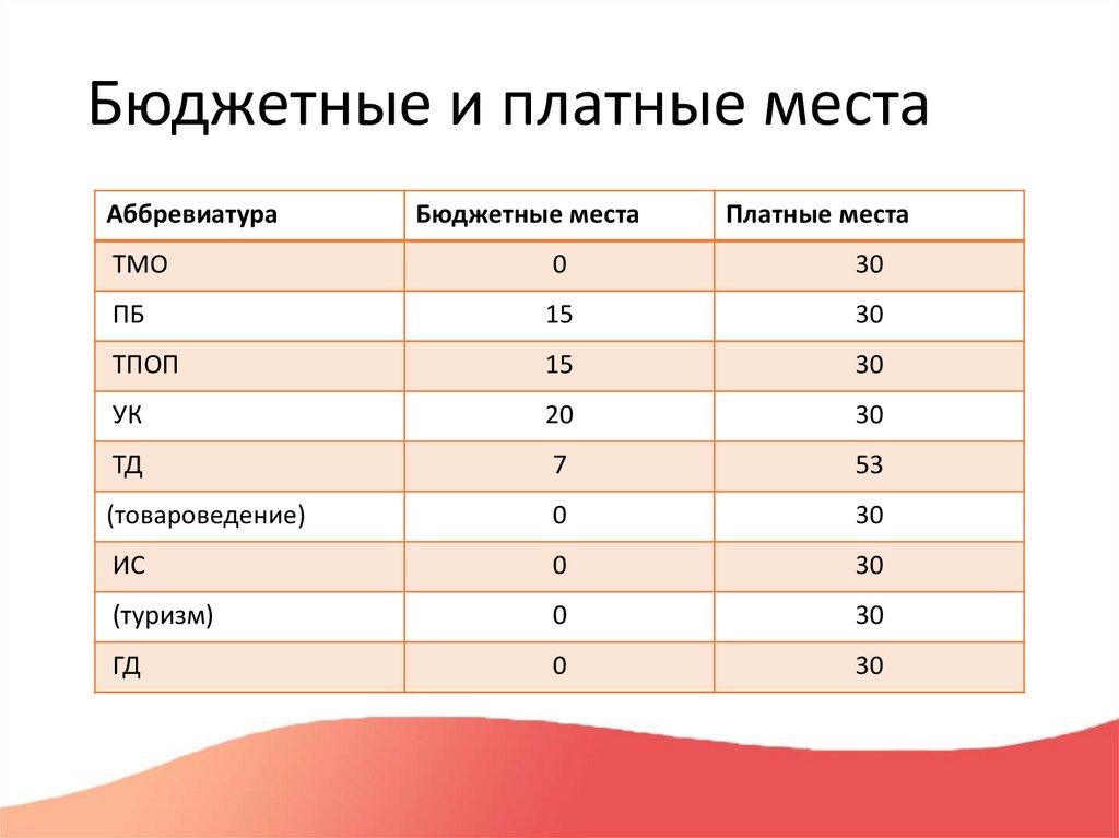 Бюджетные и платные местаАббревиатура