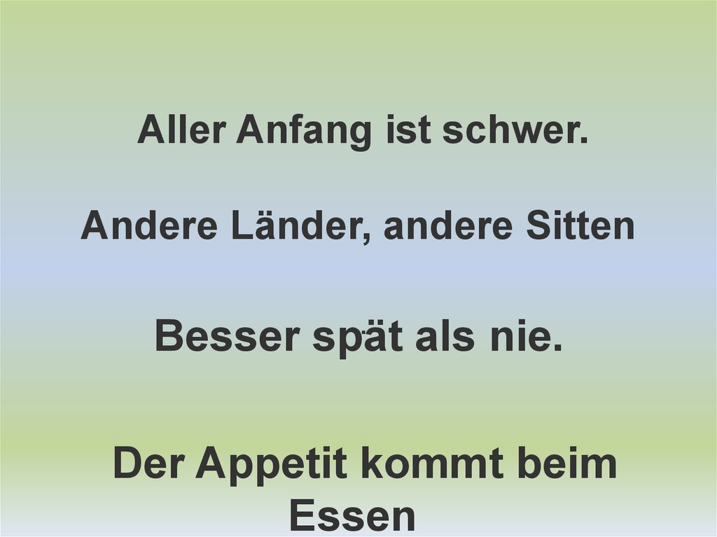 Aller Anfang ist schwer.Andere Länder, andere Sitten