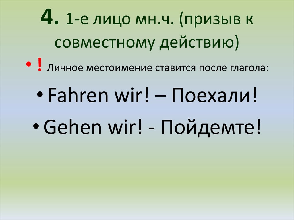 4. 1-е лицо мн.ч. (призыв ксовместному действию)