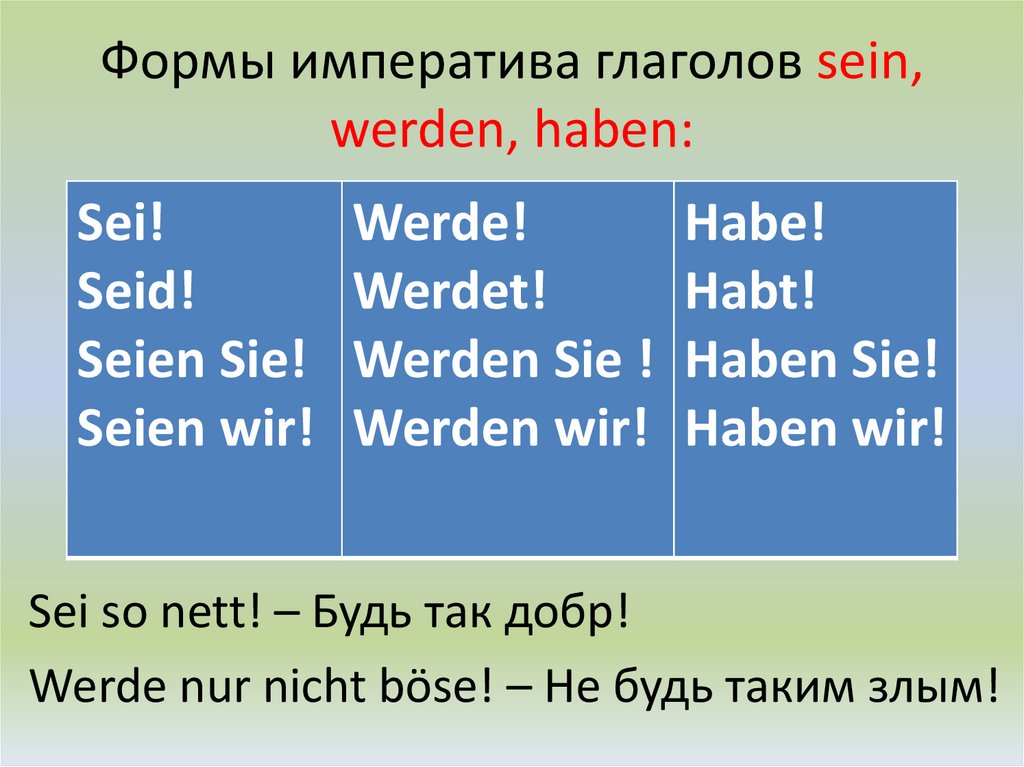 Формы императива глаголов sein,werden, haben: