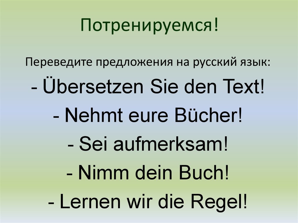 Потренируемся!Переведите предложения на русский язык: