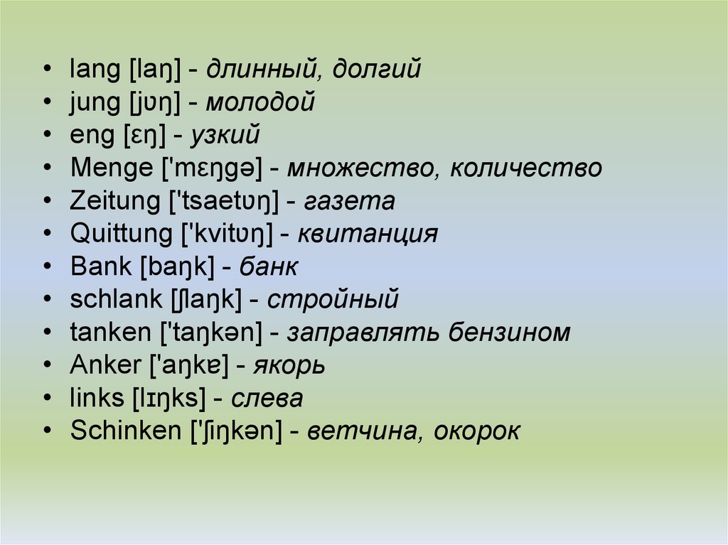ng и nk• В немецком языке, как и в английском,