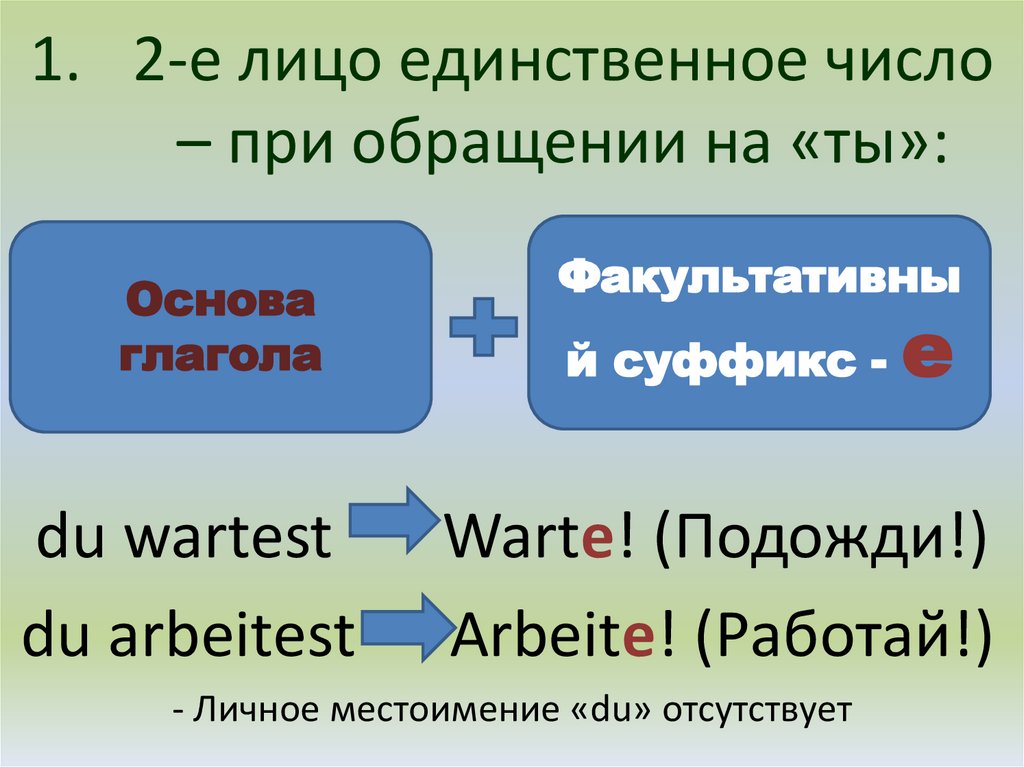 - Личное местоимение «du» отсутствует