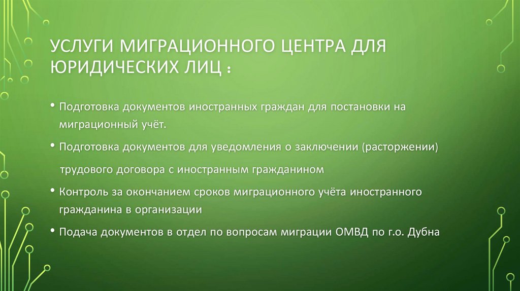 УСЛУГИ МИГРАЦИОННОГО ЦЕНТРА ДЛЯЮРИДИЧЕСКИХ ЛИЦ :