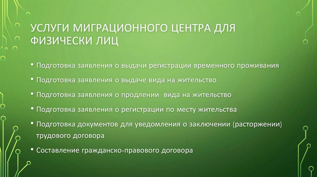 УСЛУГИ МИГРАЦИОННОГО ЦЕНТРА ДЛЯФИЗИЧЕСКИ ЛИЦ