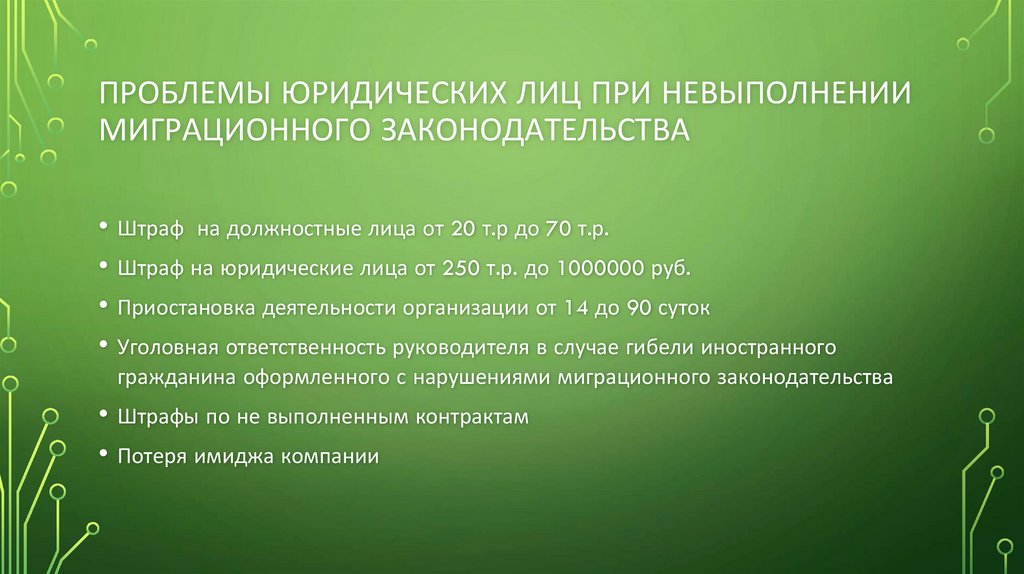 ПРОБЛЕМЫ ЮРИДИЧЕСКИХ ЛИЦ ПРИ НЕВЫПОЛНЕНИИМИГРАЦИОННОГО ЗАКОНОДАТЕЛЬСТВА