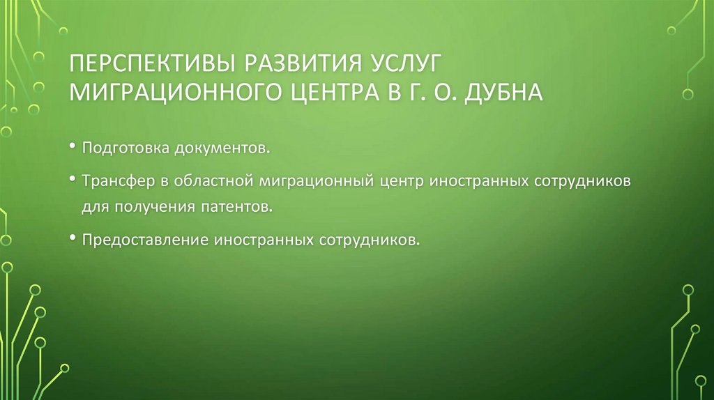 ПЕРСПЕКТИВЫ РАЗВИТИЯ УСЛУГМИГРАЦИОННОГО ЦЕНТРА В Г. О. ДУБНА