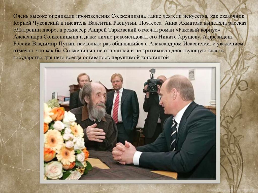 России Владимир Путин, несколько раз общавшийся с Александром Исаевичем, с уважением