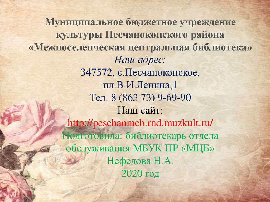 МБУК Песчанокопского района «Межпоселенческая центральная библиотека»Виртуальная выставка-размышление