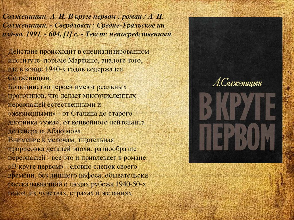 Солженицын, А. И. В круге первом : роман / А. И.Солженицын. - Свердловск : Средне-Уральское кн.