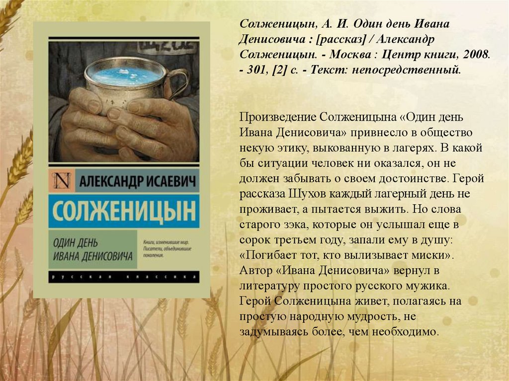 Солженицын, А. И. Один день ИванаДенисовича : [рассказ] / Александр