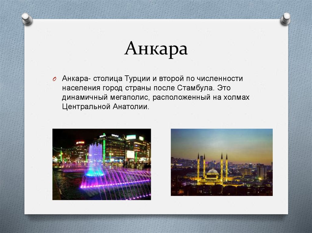 АнкараO Анкара- столица Турции и второй по численности