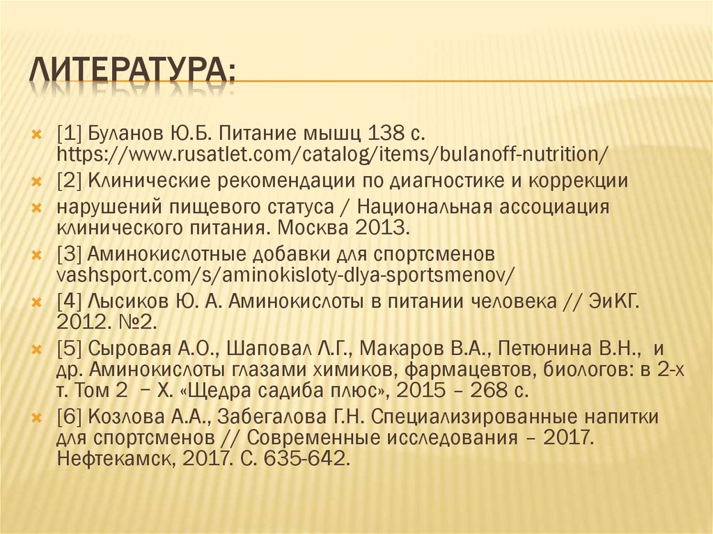 ЛИТЕРАТУРА:[1] Буланов Ю.Б. Питание мышц 138 с.