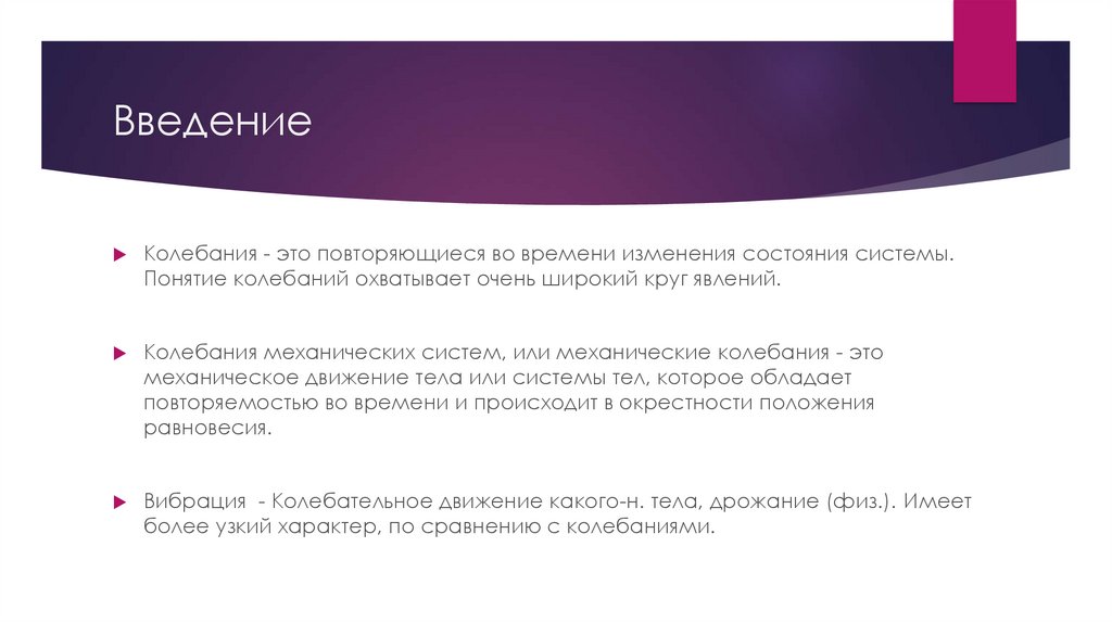 ВведениеКолебания - это повторяющиеся во времени изменения состояния системы.