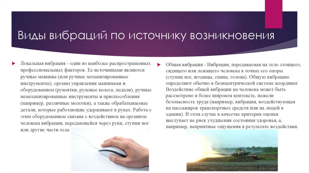 Виды вибраций по источнику возникновенияЛокальная вибрация - один из наиболее распространенных