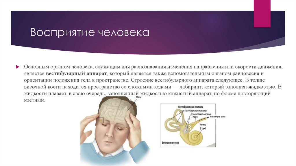 Восприятие человекаОсновным органом человека, служащим для распознавания изменения направления или скорости движения,