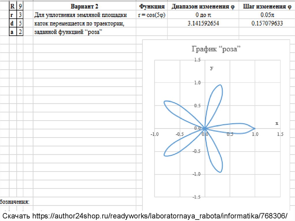 Для уплотнения земляной площадки каток перемещается по траектории, заданнойфункцией “роза”
