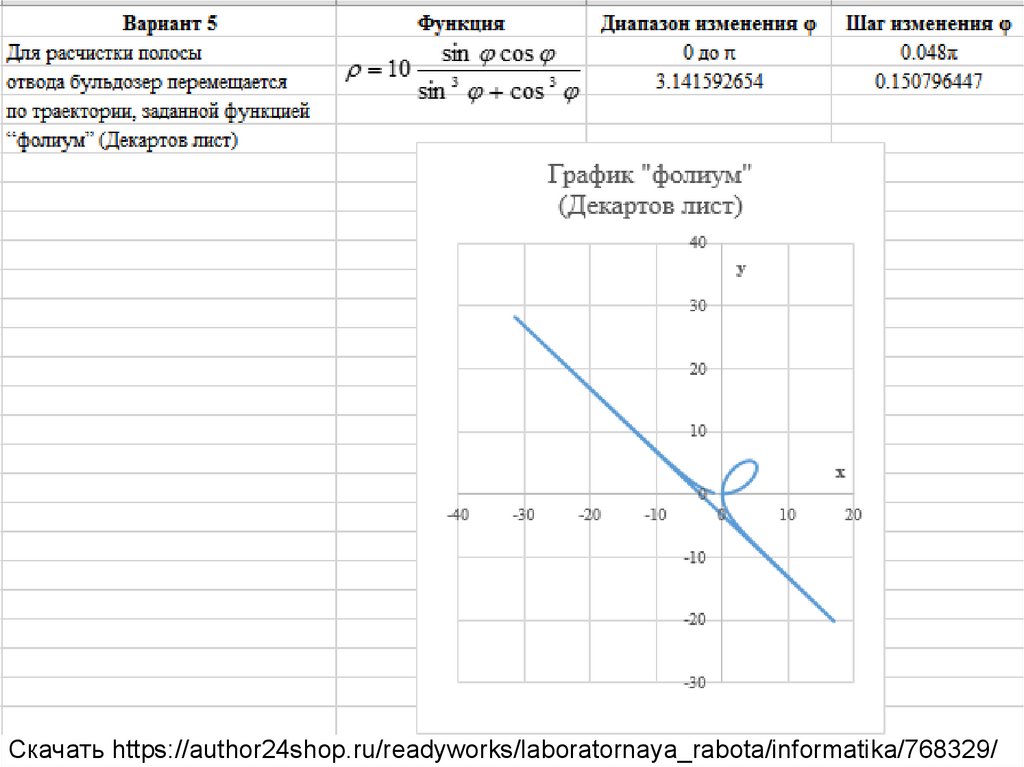 Для расчистки полосы отвода бульдозер перемещается по траектории, заданнойфункцией “фолиум” (Декартов лист)