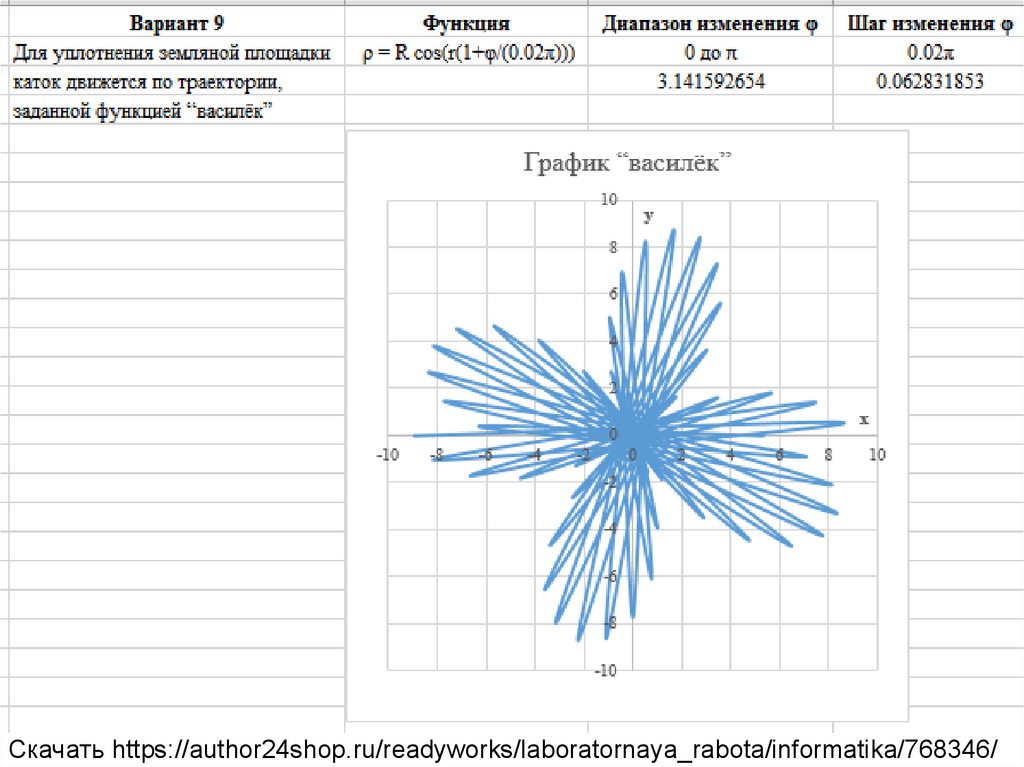 Для уплотнения земляной площадки каток движется по траектории, заданнойфункцией “василёк”.