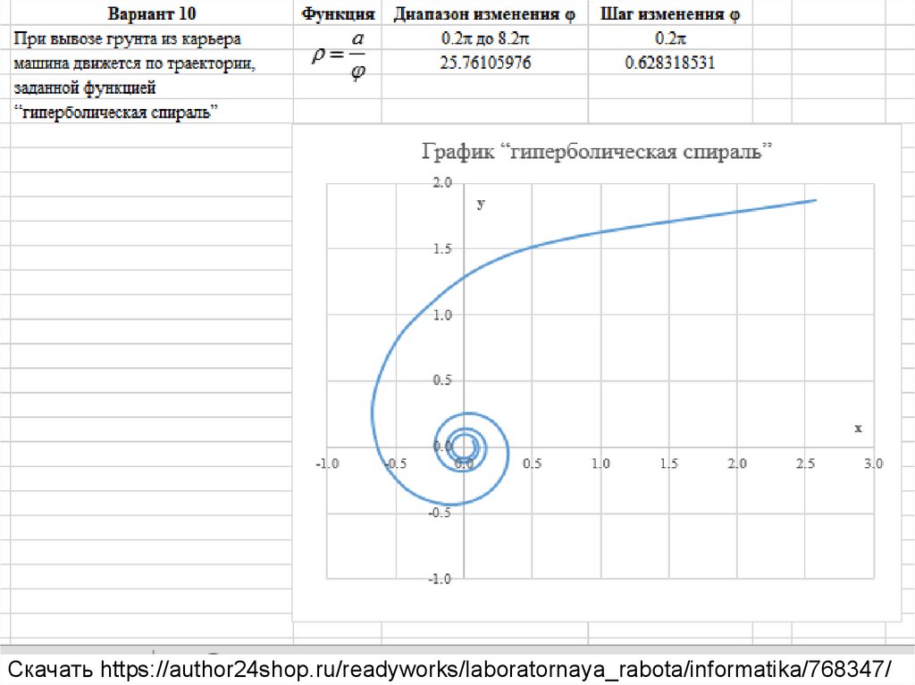 При вывозе грунта из карьера машина движется по траектории, заданнойфункцией “гиперболическая спираль”
