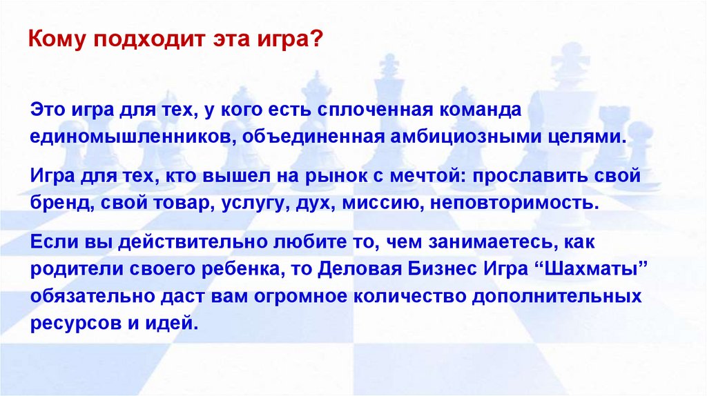 родители своего ребенка, то Деловая Бизнес Игра “Шахматы”