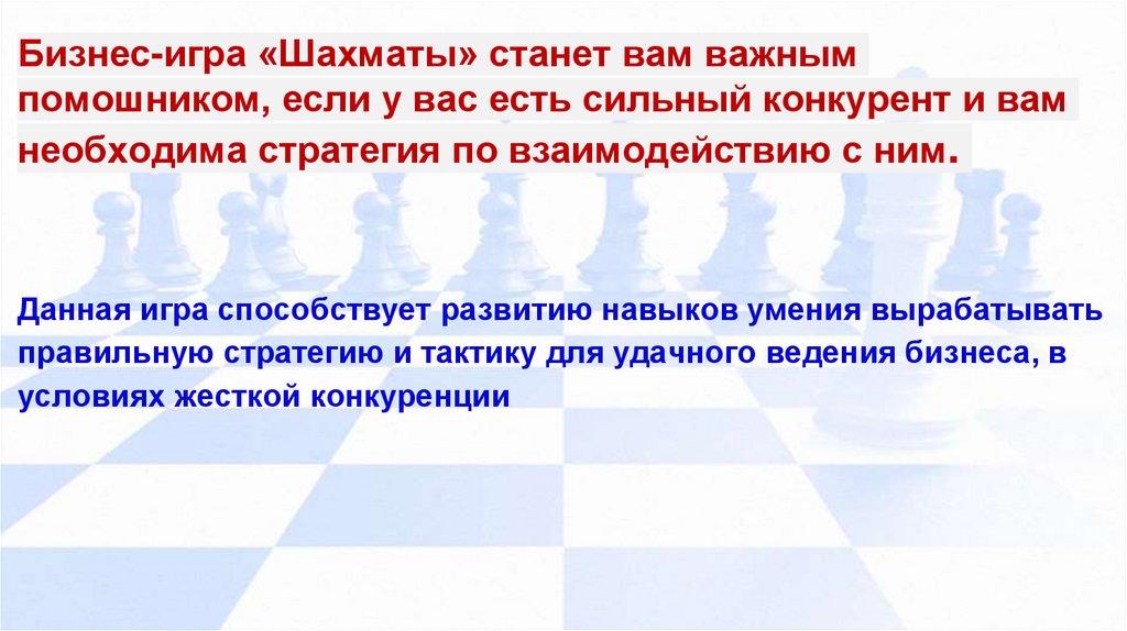 Бизнес-игра «Шахматы» станет вам важнымпомошником, если у вас есть сильный конкурент и вам