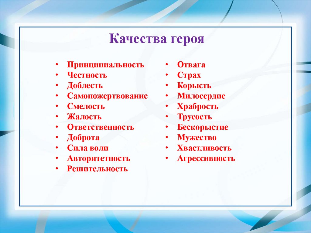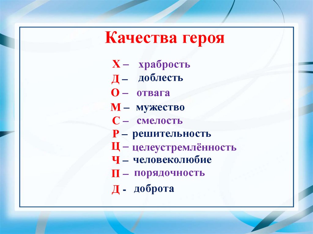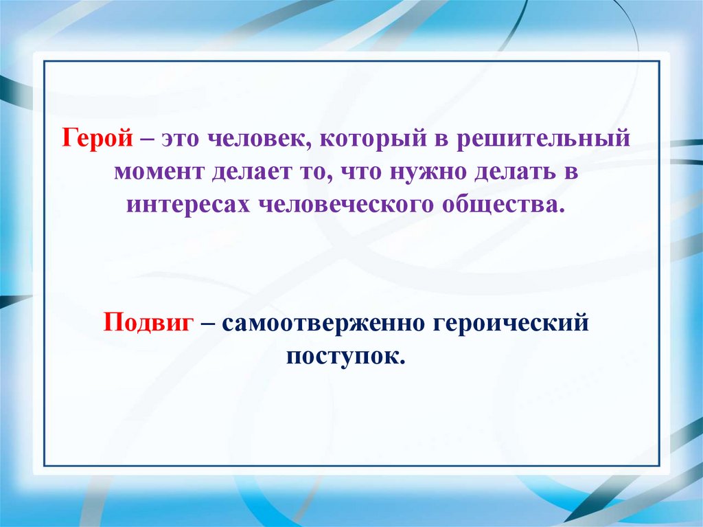 Герой – человек, совершающий подвиги, необычныйпо своей храбрости, доблести,