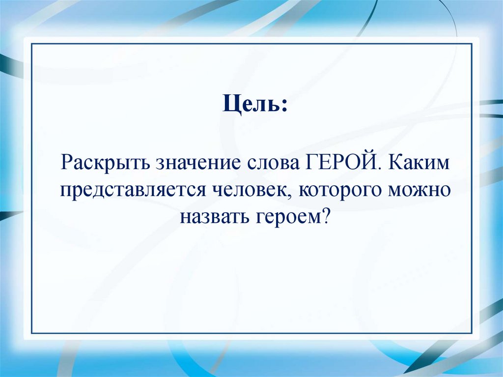 Цель:Раскрыть значение слова ГЕРОЙ. Каким