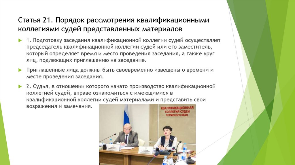 Статья 21. Порядок рассмотрения квалификационнымиколлегиями судей представленных материалов