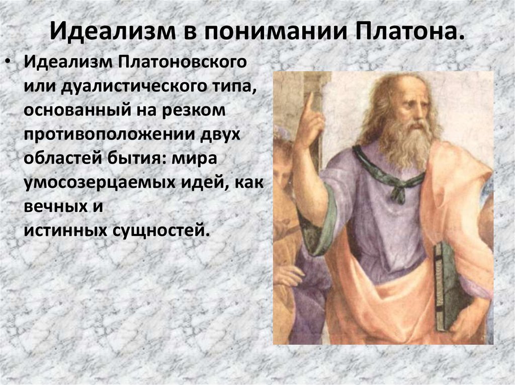 Идеализм в понимании Платона.• Идеализм Платоновского